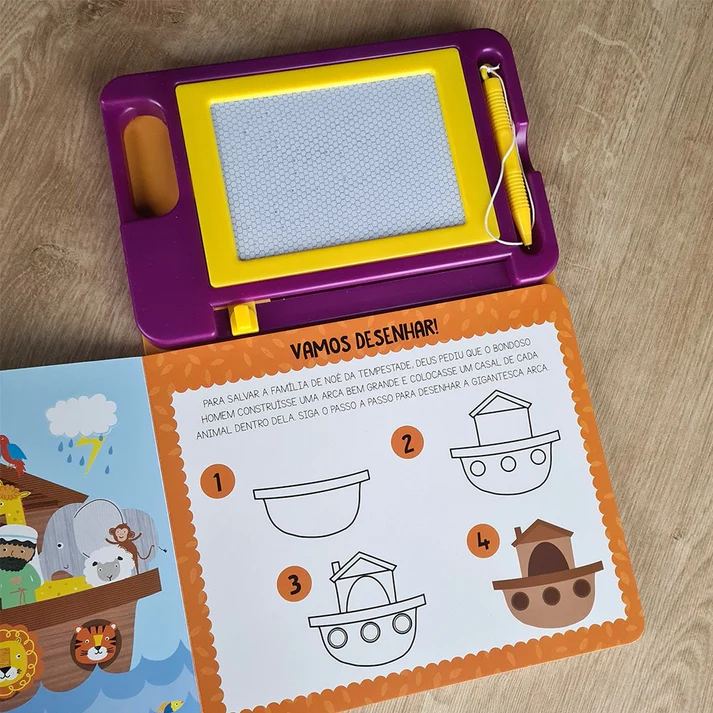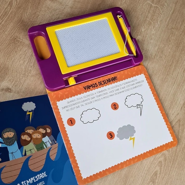 Em Belém, nasceu o menino Jesus, trazendo paz, alegria e muita luz… Esteja pronto a aprender um pouco mais sobre as histórias da Bíblia, enquanto se diverte fazendo muitos desenhos nesta lousa mágica!