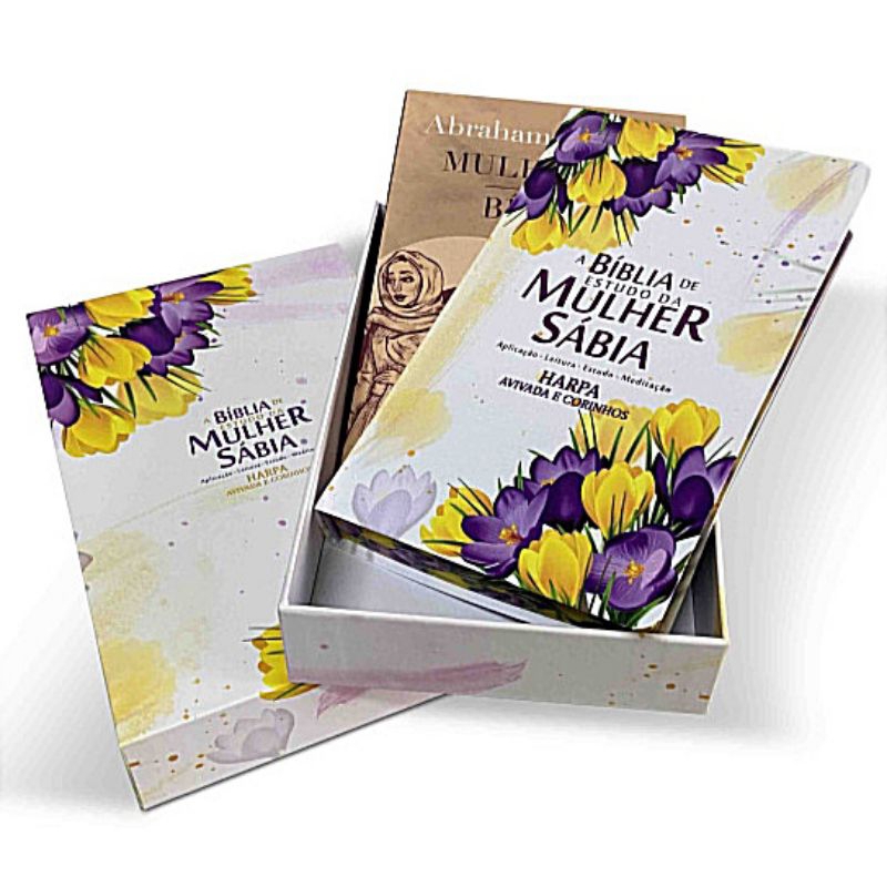Em sua EDIÇÃO ESPECIAL e exclusiva, acompanham a Bíblia de Estudo da Mulher Sábia, um livro Mulheres da Bíblia e box personalizado colecionável.