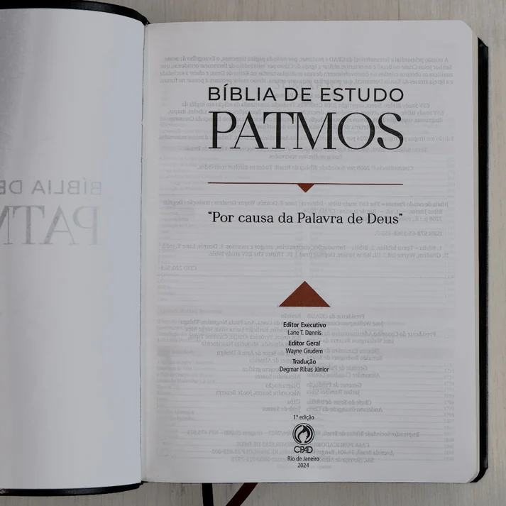 MAIS UM LANÇAMENTO EXCLUSIVO DA CPAD BÍBLIA DE ESTUDO PATMOS A Bíblia de Estudo Patmos foi criada para aprofundar o entendimento da Palavra de Deus, como uma realidade poderosa, convincente e que transforma vidas. Para alcançar este objetivo, combinou-se um recente e abrangente estudo bíblico evangélico com o tradicional texto ARC, conhecido de forma notável por sua fidelidade aos originais. Desenvolvida por uma impressionante equipe de 95 estudiosos e professores cristãos evangélicos, a Bíblia de Estudo Patmos possui um robusto conteúdo de ensinamentos expressos através de suas notas, artigos e ferramentas de estudo que ofertam o equivalente a uma verdadeira biblioteca de recursos bíblicos. Principais características: + de 40 mil referências cruzadas e concordância do texto Almeida Revista e Corrigida (ARC) 20 mil notas de estudo 2.208 páginas com interpretação, ensino, mapas, quadros e artigos 200 mapas com notas ao longo do texto bíblico 200 gráficos + de 50 artigos sobre tópicos essenciais em Bíblia, teologia, ética e apologética 40 ilustrações, incluindo representações e esboços arquitetônicos