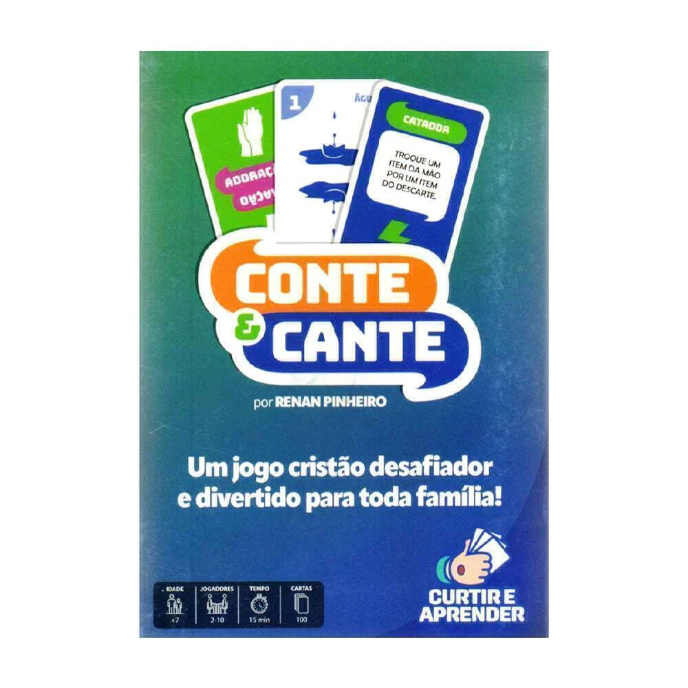 Você é bom de Bíblia!? Ou talvez… sabe muito sobre as letras dos louvores? O jogo Conte e Cante vai aguçar o seu conhecimento sobre as histórias bíblicas e te fazer cantar bem alto com os temas de cada rodada! Logo de início é definido um tema, e cada jogador começa com 7 cartas ITEM nas mãos, o desafio é contar uma história bíblica relacionada com o tema da vez usando os ícones dados por essas cartas.