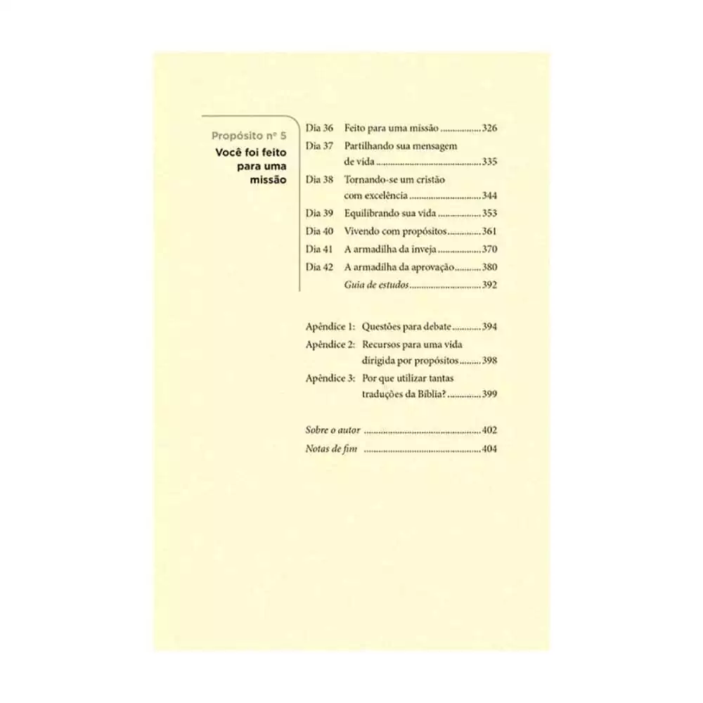 impediam maiores realizações pessoais. Porém, com a brilhante contribuição de Rick Warren, certamente você terá suprida essa necessidade pessoal. O autor levará você a uma séria reflexão sobre o real sentido da vida e ao posicionamento adequado para que tenha uma vida com real significado e que faça a diferença.